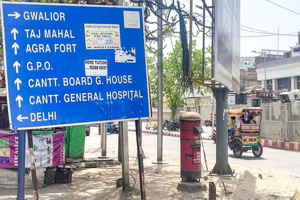 インド北部の都市アーグラは、首都ニューデリーから南東へ約200kmの地点にあり、デリー、ジャイプールとともに観光の定番ルートのひとつとして知られています。世界的に有名な「タージ・マハル」のある観光都市として知られていますが、中心地を少し離れるとのどかな風景が残ります。イギリス統治時代に郵便制度が整備されたことから、インドのポストは本国と同じ赤い筒形をしています。アーグラでは、強い日差しを受けてその赤が焼け、赤褐色に見えました。