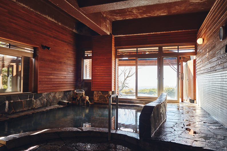 大浴場の内湯は肌にやさしい単純泉。木の温もりに包まれ、窓の外には霧島の森が広がります。朝は澄んだ空気の中で清々しく、夕暮れにはやわらかな光が差し込み、時間帯ごとに異なる表情を楽しめます。